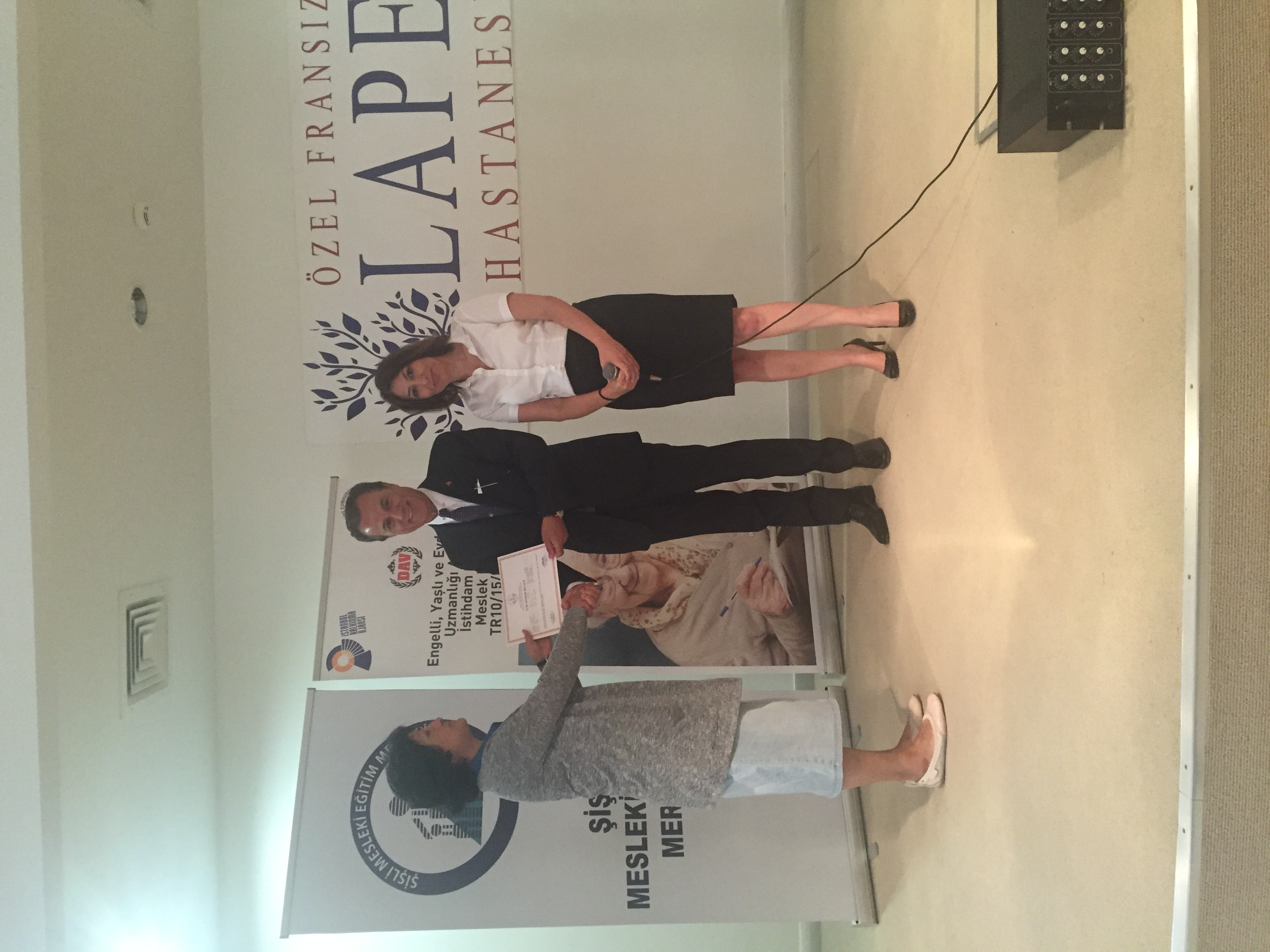 Başkanımız Dr.Fatih R.SARAÇOĞLU, Lape Hastanesi Özürlü Bakım Elemanı Kursiyerlerinin Sertifika Töreninde açılış konuşması yaparak katılmıştır. Tören Şişli Kaymakamı Salih IŞIK, Şişli İlçe Milli Eğitim Müdürü Murat Mücahit YENTÜR ve Dr.Fatih R.SARAÇOĞLU' nun kursiyerlere sertifikalarını vermesiyle devam etmiştir.